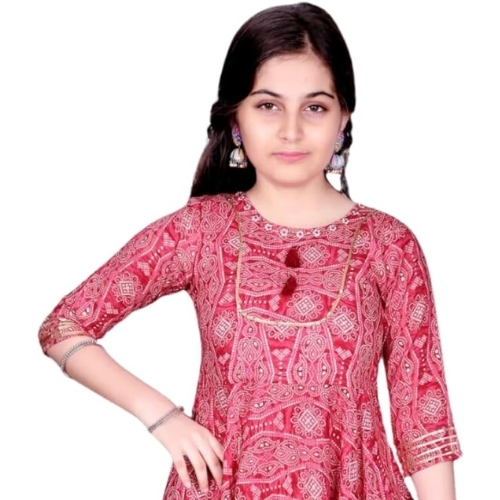 These co ords are crafted from soft cotton, the 3/4th-sleeved top and matching gharara set feature a sweet floral embroidery along the neckline that little girls will adore. Available in a cheerful tomato red hue, this coordinating two-piece will keep her comfortable while letting her imagination soar as she dreams of flowers and fairies. Bottom have an elastic waist for easy on and off. Dress her in this co-od set and watch her twirl with glee, happy in the knowledge that cozy comfort and charm go hand in hand. Machine wash in cold water for long-lasting wear.