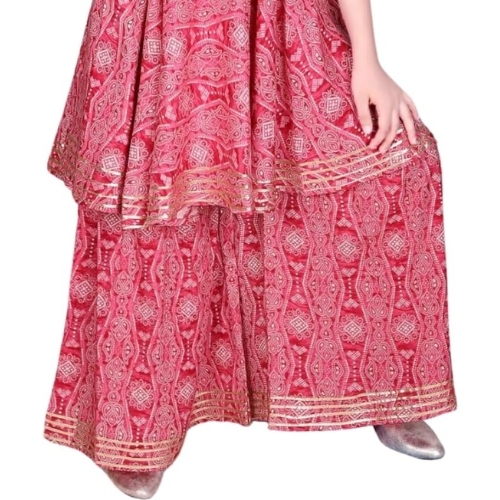- DARK PINK GHARARA PERFECTION: Crafted from soft cotton, the wide-leg gharara and flowing top in a lovely dark pink color make a perfect coordinated look.