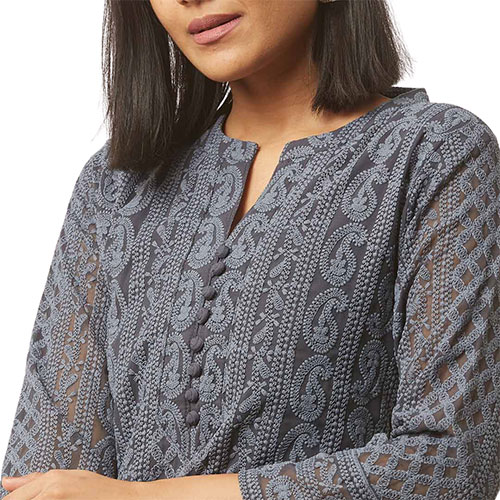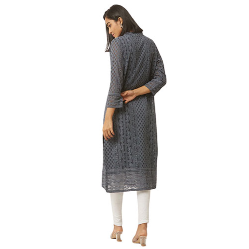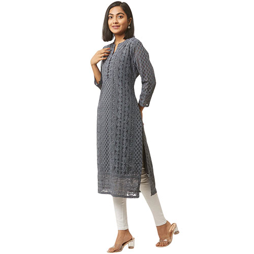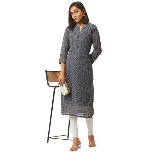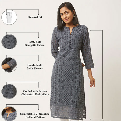 - Elegant Design: This kurta features beautiful grey paisley embroidery on a lightweight georgette fabric for a stylish and comfortable outfit.