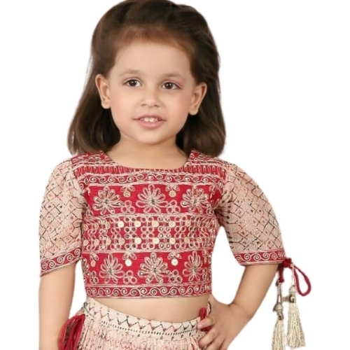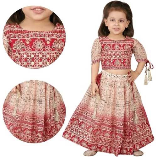 Kids Girls Embroidered georgette Lehenga Choli Set, Red