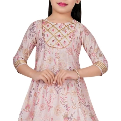 These darling co-ods are crafted from soft cotton, the 3/4th-sleeved top and gharara set feature a sweet floral embroidery along the neckline that little girls will adore. Available in a cheerful lights pink hue, this coordinating two-piece will keep her comfortable all time. The bottom have an elastic waist for easy on and off. Dress her in this co-od set and watch her twirl with glee, happy in the knowledge that cozy comfort and charm go hand in hand. Machine wash in cold water for long-lasting wear .