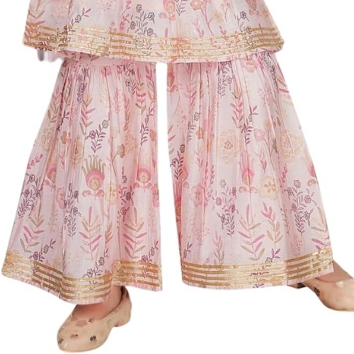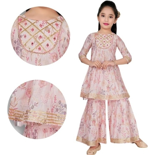 Light Pink Embroidered Coords Set for Girls, Cotton Kurta and Matching Gharara