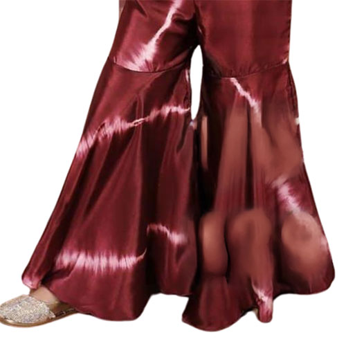 Maroon Tie dye Sharara set for Young Girls, Gold Print Kaftan top and Sharara Set