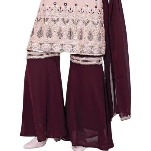 Pink and Maroon Embroidered Sharara Suit with Embroidery, Ready to Stand Out