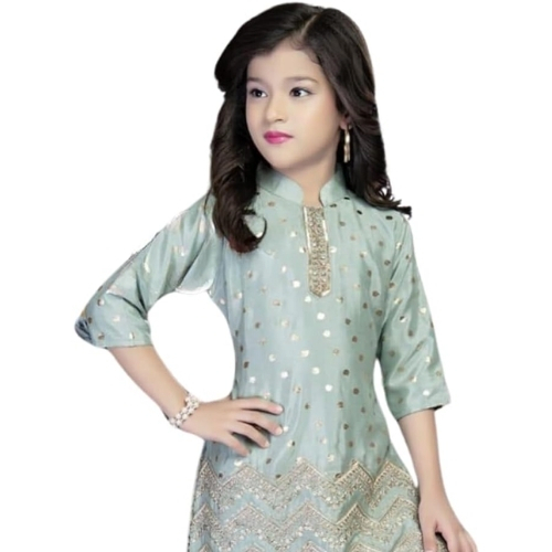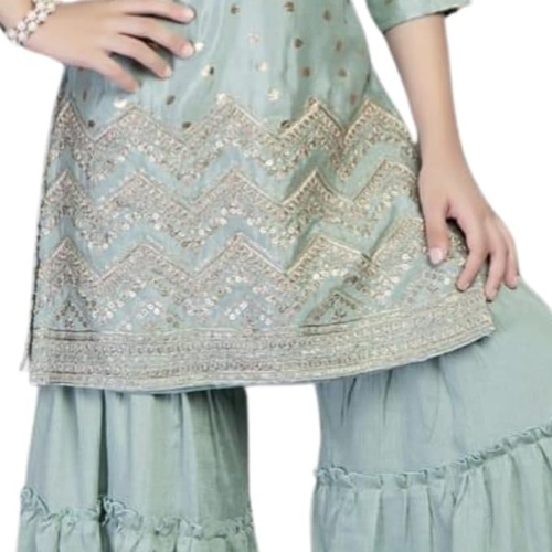 - Traditional Style for Kids: Inspired by classic Indian fashion, this sharara set allows kids to enjoy the traditions in a fun sea green color