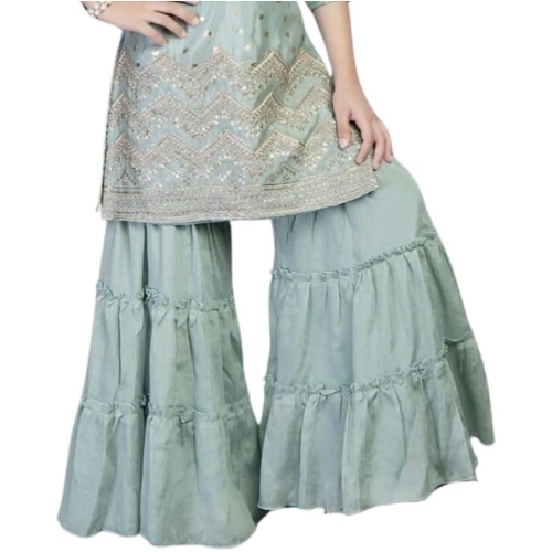 Sea Green Embroidered Sharara Set for Girls, Organza Kurta with Gota Embroidery and Matching Pants